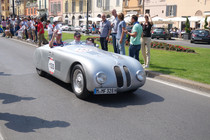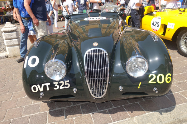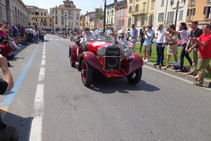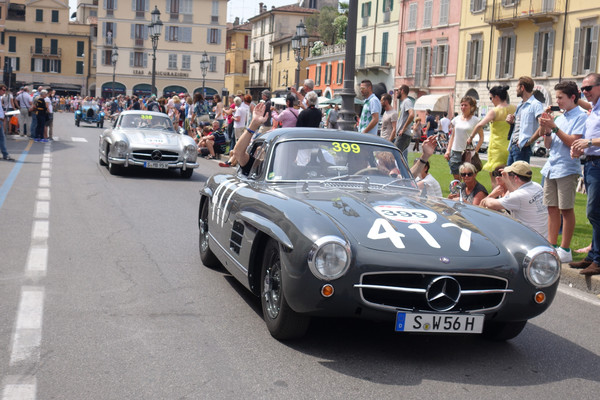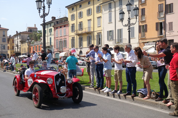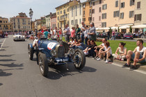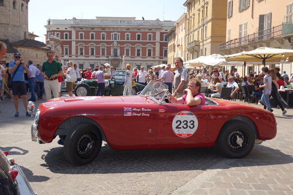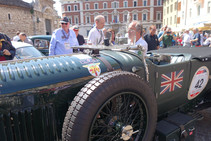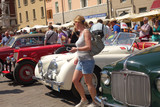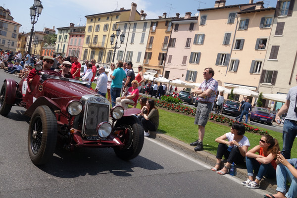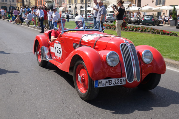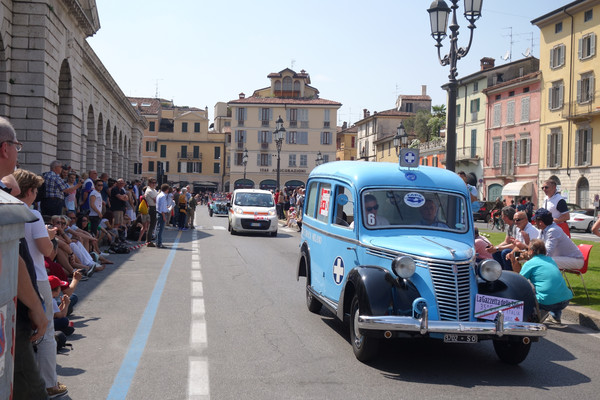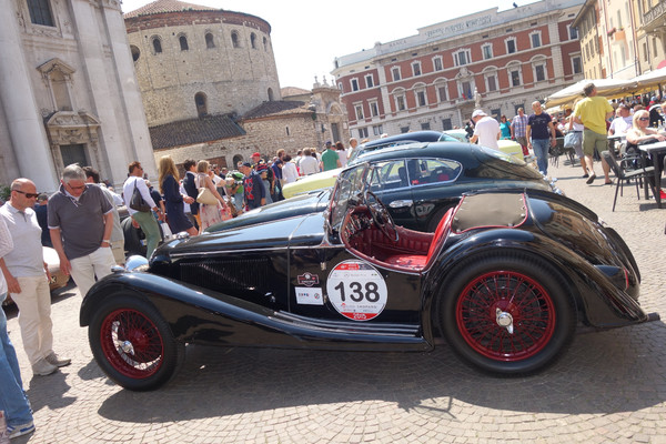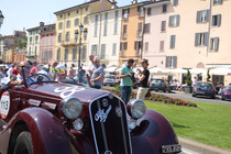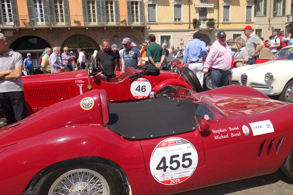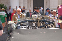 Das Zentrum Brescias war erfüllt vom Menschengewirr und der nicht enden wollenden Reihe historischer Autos, die auf dem abgesperrten zentralen Platz registriert wurden. Unsere kleine Gruppe trennte sich, nachdem ein Treffpunkt zu einer späteren Stunde vereinbart worden war. Man wühlte sich durch die Menschenmenge, um möglichst nah an die Absperrungen zu kommen. Später parkten die registrierten Wagen bis zum Start in den Straßen. So hatten wir viel Zeit, die Kostbarkeiten aus nächster Nähe zu bewundern. Historische Autos in historischer Umgebung – eine geniale Symbiose!