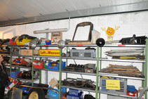 Im Anschluss ging es wieder nach draußen, wo die mitgebrachten Fahrzeuge (Wanderer, Ferrari, Porsche und Mercedes), aber auch die Werkstatt von Peter B. , gezeigt und bestaunt wurden.