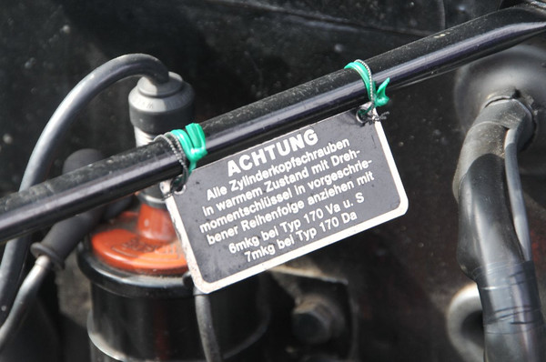 Auf dem Hof hatte Peter B. wieder seinen in Tschechien erworbenen Einzylinder-Motor aufgebaut. Auch hieß es wieder, dass dieser an den letzten beiden Tagen wunderbar gelaufen sei. Es kam, wie es kommen musste. Der Motor sprang nicht an. Viele versuchten sich an der Handkurbel; nach gut 30 Minuten gelang es dann tatsächlich, das gute Stücke zum Leben zu erwecken.