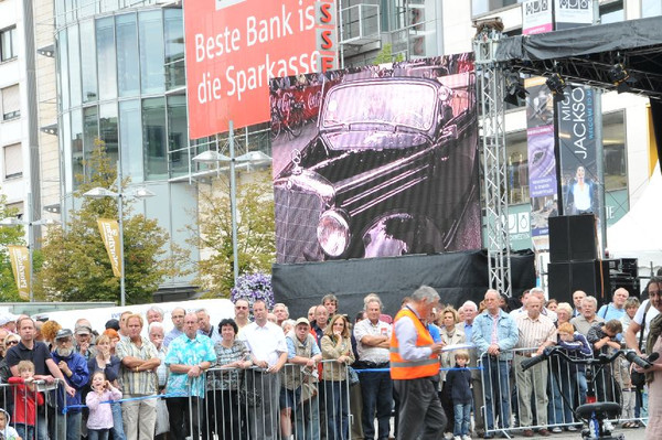 Am nächsten Morgen wurden zunächst die über Nacht im Busdepot abgestellten Fahrzeuge wieder in Gang gesetzt. Der Start des zweiten Tages begann in der Pforzheimer Innenstadt, die unter dem Motto 'Motorissimo' als Eventbereich eine tolle Kulisse abgab. Die vielen Zuschauer bereiteten den Teilnehmern einen begeisterten Start.