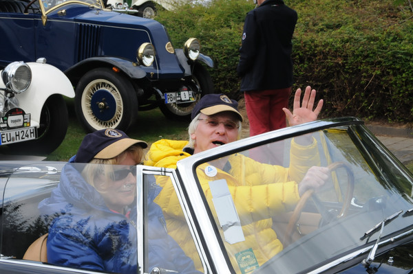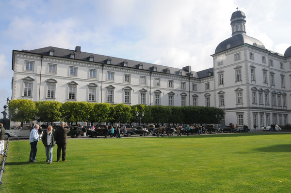 Eine Ausfahrt ist zwar lustig, aber kein Spaß. Ab 7 Uhr fuhren wieder die Shuttles von den Hotels zur Messe. Die erste knapp 45-minütige Etappe führte die Teilnehmer ins Schloss Bensberg, wo die Fahrzeuge gut eine Stunde ausgestellt und präsentiert wurden. Die heutige Etappe führte durch das Bergische Land, ebenfalls eine wunderschöne Landschaft mit diversen Weiden, die von vielen Pferden, Kühen, Schafen und Ziegen bevölkert waren. Oldtimer schienen keine Gefahr und auch nur selten vorbei zu kommen. Die Tiere waren jedenfalls alle sehr interessiert, was da in ihrem Revier passierte.