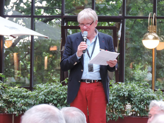 Um 19 Uhr war zum Empfang und Essen in die große Halle des Maritim geladen. Ein "Kölsches Buffett" und der Männerchor der Deutz AG (der ersten Motorenfabrik, deren Firmengründer, Nicolaus August Otto, den ersten funktionsfähigen Viertaktmotor entwickelte) stimmten die Teilnehmer auf das Rheinland ein. Im Anschluss gab es noch ein kurzes Fahrerbriefing. Speisen und Getränke dieses Abends wurden von einem Mitglied der Landesgruppe Rheinland spendiert. Dafür an dieser Stelle ein herzliches Dankeschön.