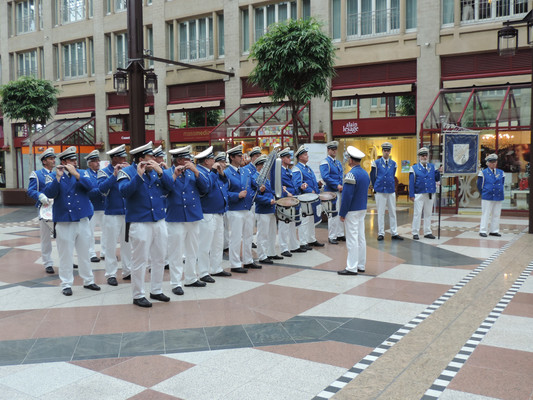 Die Nachmittagsroute führte die Teilnehmer wieder nach Köln. Wieder im Hotel angekommen, traf man sich gegen 18:30 in der Lobby. Präsident Werner Krupp und seine Leute hatten auch hier wieder etwas besonderes arrangiert, womit sich die meisten Teilnehmer vmtl. bisher eher selten bis gar nicht konfrontiert sahen. Der Tambour- und Hornisten Club Köln Kalk Humboldt von 1924 e.V. Spielmannszug spielte auf. Steffi K., die ein Zimmer zum Innenhof hatte und ein wenig spät dran war und noch im Bad Stand, hatte den Verdacht, dass der Zug direkt durch ihr Zimmer marschierte.