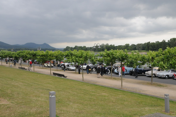 Auch wenn die Sonne nur gelegentlich den Weg durch die Wolken fand, war es trocken und die hügelige Landschaft lies jeden eher vermuten, dass er sich im Schwarzwald befand. Gegen Mittag fanden sich alle Teilnehmer im Kameha Grand am Rheinufer in Bonn ein. Das hochmoderne Design stand zwar im krassen Widerspruch zu den Fahrzeugen der Teilnehmer, dennoch eine sehr interessante Location, die einen durchaus ins Staunen versetzte.