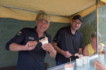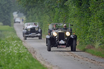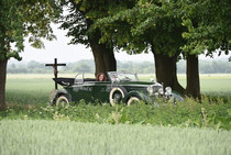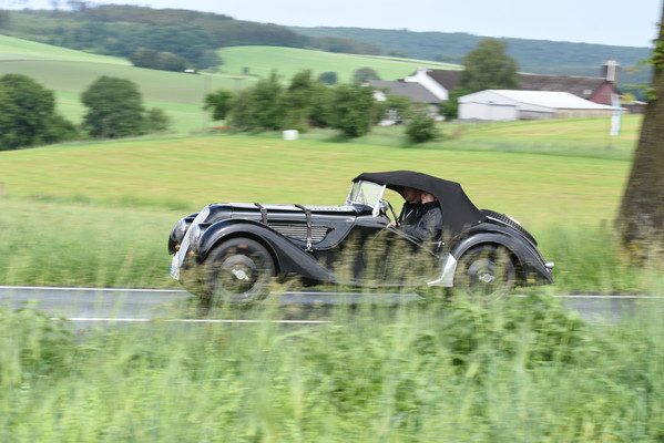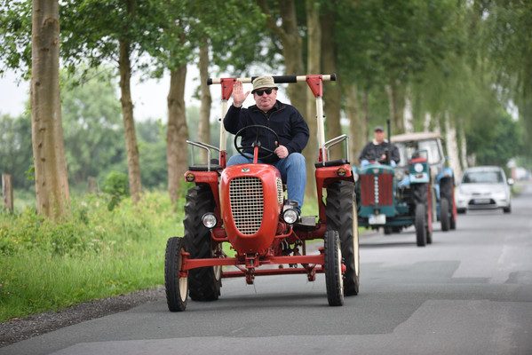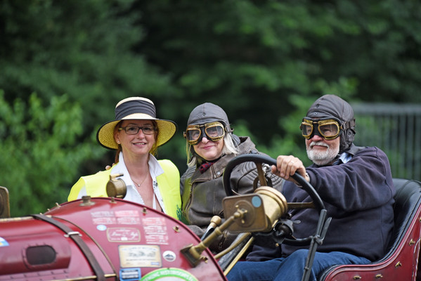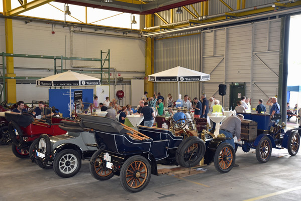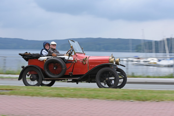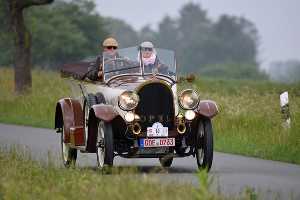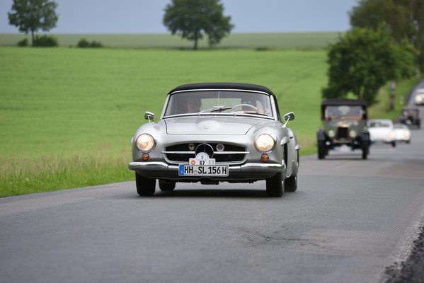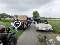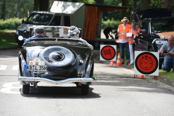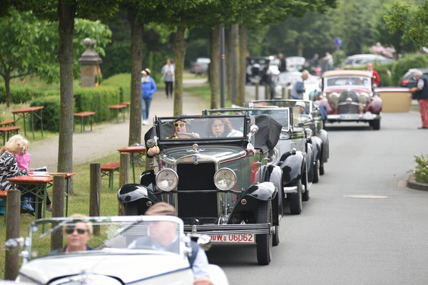 Am zweiten Fahrtag dirigierte das Roadbook, sorgfältig ausgearbeitet von SB Helmut Auge, in die Region um Geseke und Soest. Unter optimalen Bedingungen rollten die alten Schnauferl mühelos durch die Landschaft. Highlight der Tagesetappe war die Durchfahrt durch den Ort Verlar. Vor der Haustüre von SB Kalli Behlau waren Bänke entlang der Straße aufgebaut und hier drängten sich begeisterte Zuschauer, die einen Blick auf die wunderschönen Oldtimer werfen wollten. Fahrer und Beifahrer wurden mit bestem italienischem Eis versorgt, Johannes Hübner begrüßte die Teams und moderierte das Szenario, Fotografen der örtlichen Presse feuerten ein Blitzlichtgewitter nach dem anderen ab und sogar eine Blaskapelle spielte mit zünftiger Musik auf.