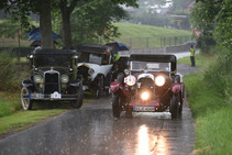 War man mit dem guten Wetter am Anreisetag verwöhnt, so versprach die Vorhersage für den Freitag einige Überraschungen und 5 Minuten vor dem geplanten Start schüttete es schlagartig wie aus Kübeln. Bei den Teams mit Fahrzeugen ohne brauchbaren Wetterschutz verdunkelte sich die Stimmung wie der bedrohlich schwarze Gewitterhimmel. An eine Fahrt unter diesen Bedingungen war überhaupt nicht zu denken. Erst mit einer Stunde Verzögerung konnte Petra-Maria von Wahlberg, bei der „Autostadt“ verantwortlich für Messen und Präsentationen, die Startflagge am 'Erlebnismuseum Salzwelten', in der Ortsmitte von Bad Sassendorf, schwenken. Moderiert wurde das Geschehen von dem ASC Mitglied Johannes Hübner, der wieder einmal auf seine charmante Art und mit beeindruckendem Fachwissen die Anwesenden begeisterte.