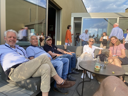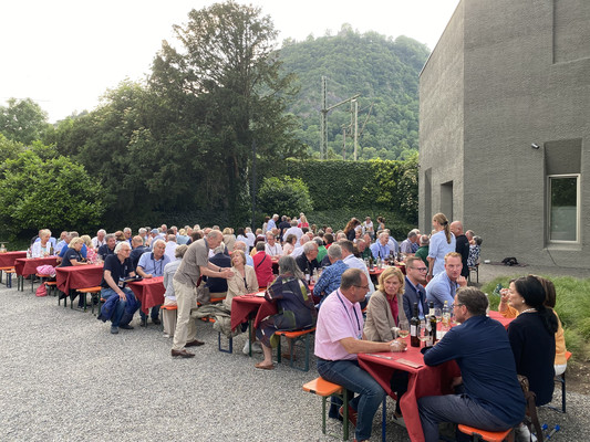 Das Abendessen fand direkt am Bodensee auf der Terrasse des Mettnau-Cafe in Radolfzell statt, wohin die Teilnehmer mit Bussen gefahren.