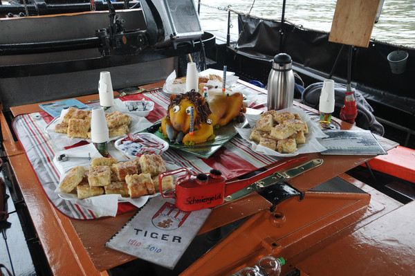 Technik pur. Stahl, Nieten, Öl und Wasserdampf. Was will man mehr. Mit einer Länge von knapp 18m und einem Tiefgang von 2,5 verdrängt der 'Tiger' 65 Bruttoregistertonnen (184m³). Die 2-Zylinder- Expansionsdampfmaschine leistet 240PS und lässt den 'Tiger' bei 130 Umdrehungen mit bis zu 9 Knoten (16 km/h) durch die Elbe pflügen.