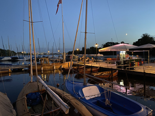 Über 20 Mitglieder haben am Montag den Weg zu Bobby Reich gefunden. Bobby Reich wird als Perle der Alster bezeichnet. Das mag im Sommer auf der großen Terrasse und im Barbereich stimmen, leider hat der Clubraum das Ambiente und die Akustik einer Kegelstube.