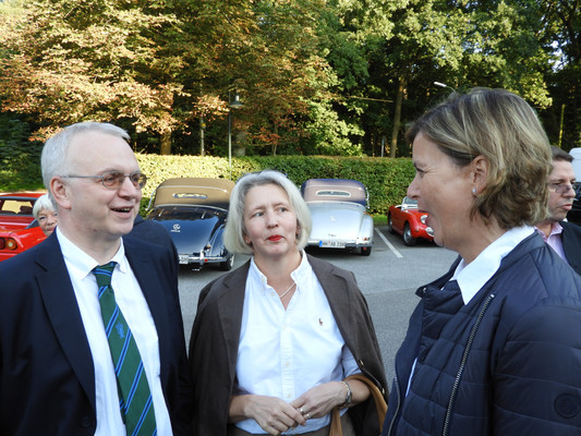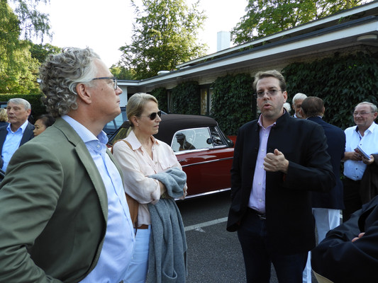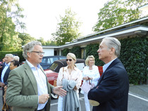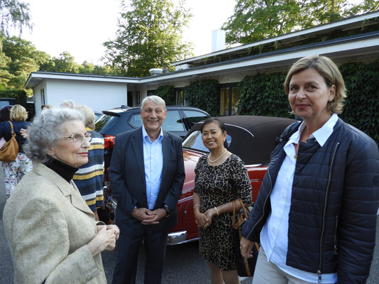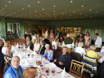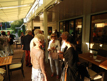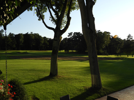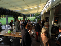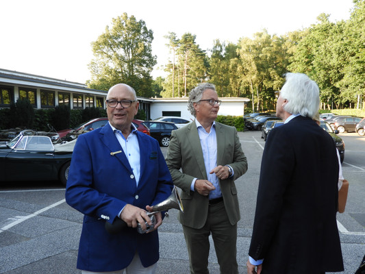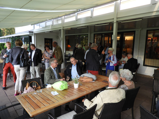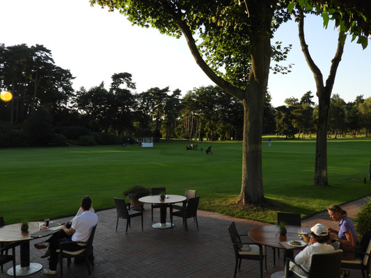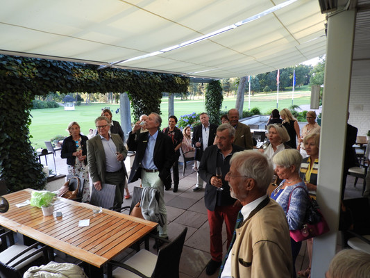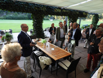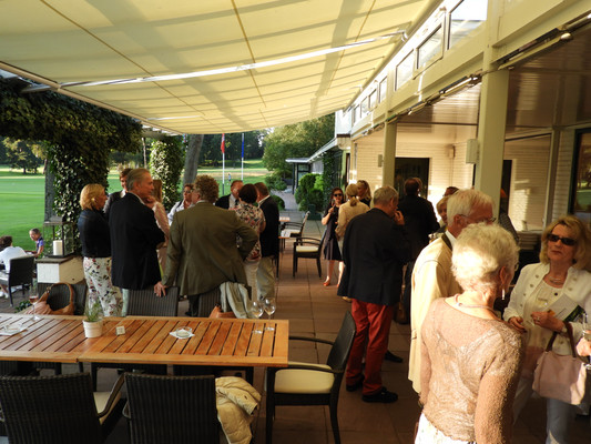 Die ersten 30 Minuten wurden mit Benzingesprächen auf dem Parkplatz verbracht, bis unser Präsident Manfred M. zum Begrüßungsdrink auf die Terrasse rief, wo jeder den tollen Blick auf das Grün genießen konnte. Das anschließende Drei-Gänge-Menü war sehr gut. Barbara spendierte allen Gästen zusätzlich zum Dessert noch Geburtstagstorte und lud anschließend alle Gäste zum Champagner-Umtrunk zu sich nach Hause ein, um nachträglich auf ihren Geburtstag anzustoßen. Es wurde wieder spät.