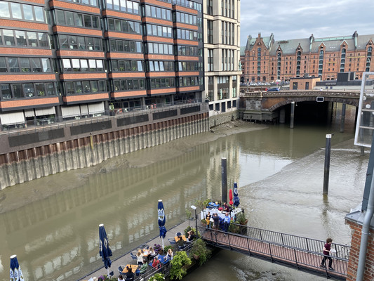 Unter uns konnten wir bei schönem Wetter und geöffneten Fenstern nicht nur den Blick in die Speicherstadt genießen, sondern auch die Gerüche des Hafens aufnehmen. Trotz dieser außergewöhnlichen Location hoffen wir, dass sich die gastronomische Situation in Hamburg zeitnah entspannt, so dass wir uns dann auch wieder mit unseren Fahrzeugen treffen können.