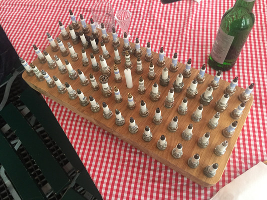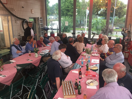 Trotz des Sommermonats war es leider wieder einmal bedeckt bei mäßigen Temperaturen, was der guten Stimmung aber keinen Abbruch tat. Die 25 Mitglieder verbrachten einen tollen Abend an dem u.a. auf den 75. Geburtstag von Peter B. angestoßen wurde. Gerd R. hatte für seinen früheren Studienfreund eine Zündkerzentorte 'gebastelt', so dass Peter B. stets ein Licht aufgehen solle.