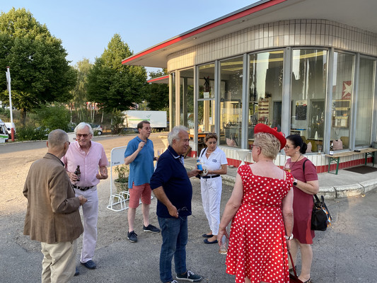 SB Rudolf E. hatte den unter normalen Umständen im Juni geplant gewesenen Clubabend an der Oldtimer-Tankstelle Brandshof dankenswerterweise noch einmal organisatorisch unter seiner Fittiche genommen. Unter Beachtung der bestehenden Hygiene- und Abstandsregeln bedeutete das allerdings, dass wir maximal 25 Personen sein durften, wenn wir uns drinnen begegnet wären.