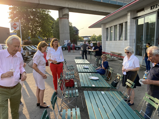 Nun hatte sich an den seit Wochen bestehenden tropischen Temperaturen entgegen angekündigten Regens dann doch nichts geändert, so dass wir mit 24 Personen draußen sitzen konnten. Es tut uns daher sehr leid, dass von unserem Sekretariat einige Absagen erteilt worden sind.