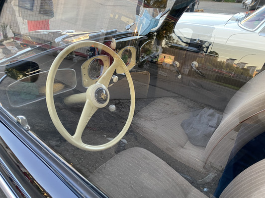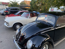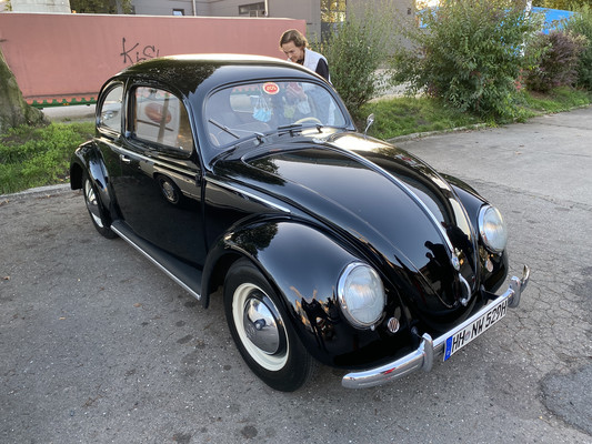 Dann fuhr Oliver mit einem schwarzen Brezel-Käfer vor (Typ 11, Bj. 06/1950, Hubraum: 1131 ccm, 24,5 PS, Special Edition Wolfsburg, Höchstgeschwindigkeit: 100km/h). Ein Auto wie aus dem Ei gepellt .