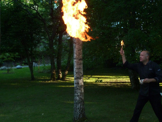 Anders Läck, Chairman des veranstaltenden Automobilhistoriska klubben lud uns zu einer beeindruckenden Dampferfahrt durch die vor Stockholm liegenden Schären ein, wir sahen das alte Fort Vaxholm und machten dann am Besitz von Anders Läck fest. Über vier Feuern drehten sich Lammbraten und es gab mehr als reichlich Wein zu trinken.