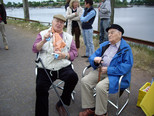 Jürgen Sauthoff hatte für alle Teilnehmer ein herzhaftes Frühstück vorbereitet. Die übrig gebliebenen Speisen wurden einem Team des Technischen Hilfswerks übergeben, das die Elbe an dieser Stelle gerade mit einem Motorboot befuhr.