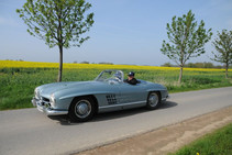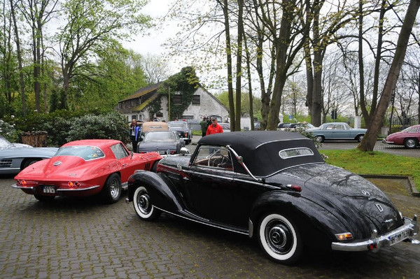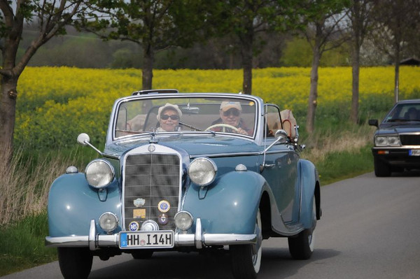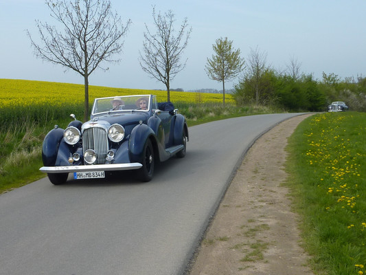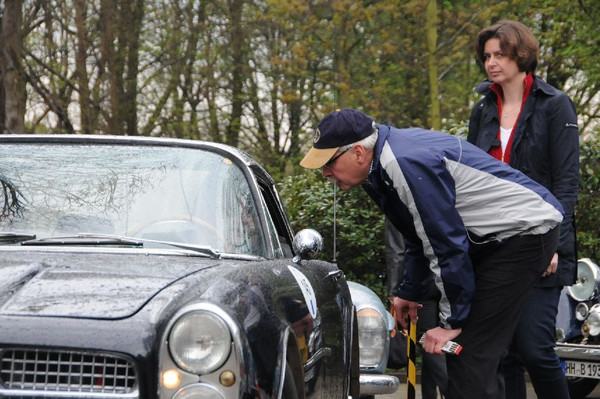 36 Fahrzeuge und 74 Personen hatten sich bis 8:30 Uhr im Herrenhaus eingefunden, welches eine großartige Kulisse für die Vor- und Nachkriegsfahrzeuge darstellte. Neben den Alfa Romeo, Austin-Healey, Bentley, Corvette, Facel-Vega, Lancia, Mercedes-Benz und Porsche, die regelmäßig an unseren Ausfahrten teilnehmen, beeindruckten besonders diejenigen Fahrzeuge, die erstmals an einer unserer Ausfahrten teilnahmen. So konnten zwei 'neue' Vorkriegs-Lagonda, ein Bentley Cabriolet mit Graber Karosserie aus den 50er Jahren und ein Maserati Quattroporte von 1985 in Ausgenschein genommen werden.