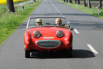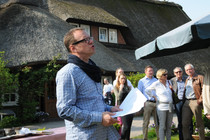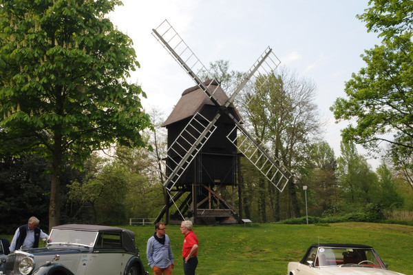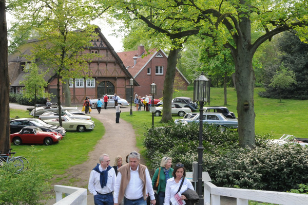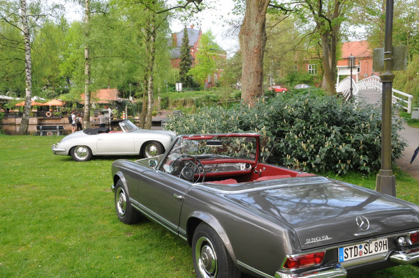 Durch Alleen von Apfelbäumen, über Felder und entlang den Deichen, deren Grasnarbe durch Schafe gefestigt wurde, ging es zum 'Gut Deinster Mühle'. Statt zum Essen zu gehen, wurde vorerst das grandiose Wetter auf der Wiese genutzt, um die Fahrzeuge zu begutachten und Benzingespräche zu führen.