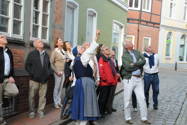 Im Anschluss gab es noch zwei Führungen durch die Stader Altstadt teil, wobei die Gruppen von echten Stader Frauen in historischen Trachten geführt wurden. Ein Stadtkern, der wirklich sehenswert ist. Allerdings… Bente, der vierbeinige Begleiter von Christine und Heinz L., sah dies jedoch völlig anders: Total langweilig!
