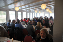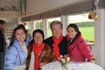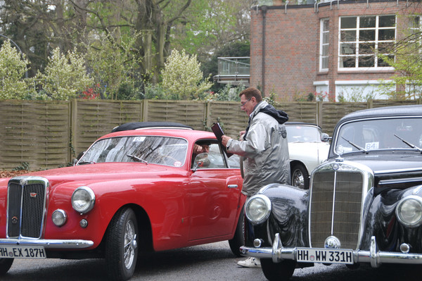 Ab 12:30 trafen die ersten Teams am Zwischenziel in der Bokel-Mühle ein. Aufenthaltsdauer: 60 Minuten. Tomatensuppe, Matjes und Roastbeef mit Bratkartoffeln und Rote Grütze waren die richtige Stärkung. Die Schlussetappe wurde von fast allen Teilnehmern pünktlich angetreten. Über die Haseldorfer Marsch, es regnete übrigens noch immer, ging es zurück in den Westen von Hamburg. Ziel war der Hamburger Golfclub Falkenstein in Blankenese. Die letzten Teilnehmer trafen hier gegen 16:30 ein. Bei frisch gebackenem Kuchen und einem wundervollen Ausblick auf einen der berühmtesten Golfplätze Deutschlands, war dies ein würdiger Abschluss für eine tolle Rallye.