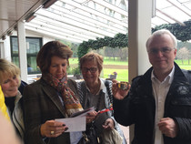 Die Auswertung der 13 Prüfungen war mittlerweile auch abgeschlossen. Platz 3 erfuhr sich das Trio um Rudolf E. Auf dem Platz 2 das Quartett um Eva B. Beide erhielten Büchergutscheine von Buchhandlung Disch. Bereits beim Frühstück war bekannt gegeben worden, dass der erste Platz aufgrund seiner Wertigkeit von einem ASC-Mitglied wahrgenommen werden muss und nicht an Dritte übertragen werden kann. Es war somit ein 'ganzer Kerl' gefordert. Gewonnen hat Thomas S., der im Sommer einen Rundflug in einer 1946er Boeing Stearman absolvieren 'darf'. Nach dieser Bekanntgabe hörte es auch auf zu regnen und die Sonne kam wieder zum Vorschein. Das musste ein gutes Zeichen sein.