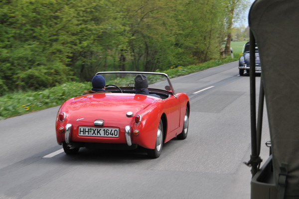 Treffpunkt war um 8 Uhr im 'Restaurant & Lounge Del' in Hamburg Poppenbüttel, das in einem historischen Backsteinhaus ansässig ist. Beim gemeinsamen Frühstück gab es einige Informationen zur Strecke. Gestartet wurde ab 9 Uhr mit dem ältesten Fahrzeug, einem Willys Overland (Bj. 1944) von Florian und Wiebke W. Danach ging es im Minutentakt weiter. Das letzte der insgesamt 42 Teilnehmerfahrzeuge startete gegen 9:45 Uhr.