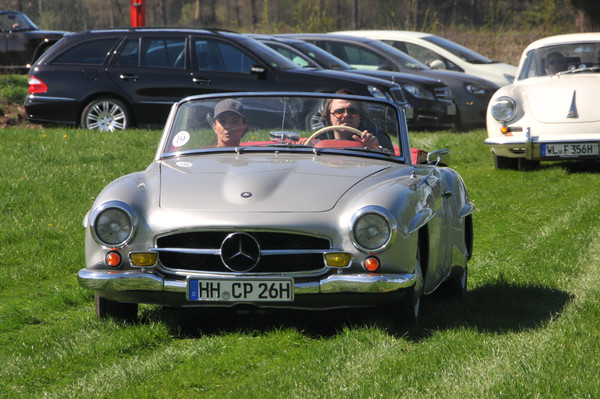 Mit 49 Fahrzeugen war die Zahl der Teilnehmer wieder erfreulich hoch. Treffpunkt war ein Gasthof in Jork, der bereits vor einigen Jahren Start einer Rallye war. Nach einem gemeinsamen Frühstück ging es los. Bei strahlend blauem Himmel und sommerlichen Temperaturen fuhren wir durch Europas größtes Obstanbaugebiet gen Norden.