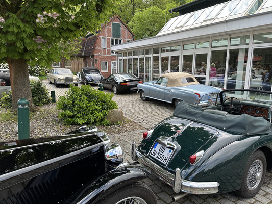 Nach der Mittagsrast im Antik-Hof Bissee ging es dann zurück in Richtung Hamburg. Auch auf diesem Teilabschnitt waren wieder mehrere Fragen zu beantworten. Ziel der Ausfahrt war das Hofcafe Büge in Hartenholm. Hartenholm kennt man als Hamburger eigentlich nur durch den gleichnamigen Flugplatz. Hier fand das berühmte Werner-Rennen statt. Der Flugplatz wurde aber auch wiederholt für internationalen Schmuggel der Länder Iran und Türkei genutzt, der schließlich zu seiner Schließung führte. Heute wird der Flugplatz nur noch von Fallschirmspringern genutzt.