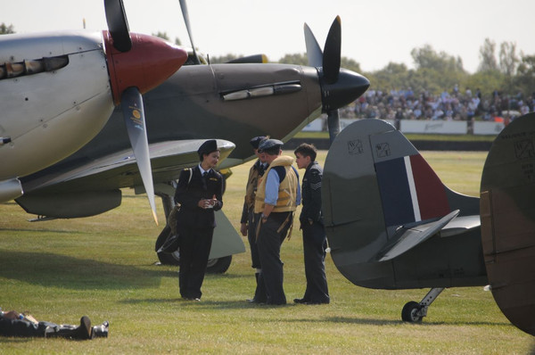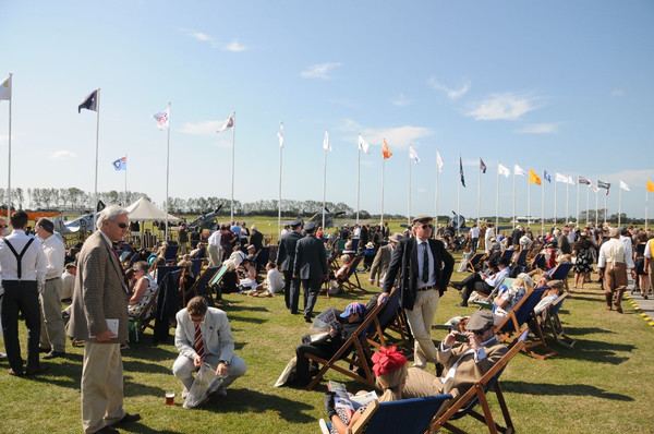 Damit ist in kurzen Worten das Goodwood Revival erklärt. Den Unterschied zu den meisten anderen Veranstaltungen macht aus, dass der Earl of March eine eigene Rennstrecke besitzt, in deren Mitte sich ein offizieller Flugplatz mit 2 Graslandebahnen befindet. Ferner darf man in England auf und über Privatgelände so ziemlich alles machen, was man möchte. In diesem Fall sind genügend Ländereien vorhanden.