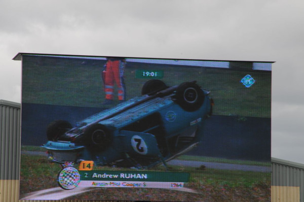 Am Nachmittag fing es doch noch an zu regnen, was sich aber auf die Durchschnittsgeschwindigkeit bei den Rennen kaum auswirkte. Für Fahrer und Zuschauer nicht schön - aber toll anzusehen, wenn die Rennboliden eine gewaltige Gischt aus Wasser hinter sich her ziehen.