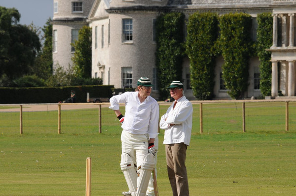Auf Einladung unseres Mitglieds Rudolf E., der in diesem Jahr mit 3 Wagen in drei unterschiedlichen Rennen startete, begann das diesjährige Revival für einige von uns bereits am Donnerstag (12.09.) mit dem Cricket Spiel der Rennfahrer (u.a. Derek Bell). Auf einer von altem Baumbestand eingerahmten Rasenfläche mit dem Landsitz des Earl of March im Hintergrund fand das britischste aller Spiele statt: 'Cricket'.