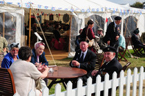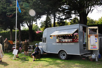 ihrem Wagen zu picknicken. Das natürlich stilecht mit Tisch und