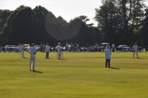 Wir trafen uns wie schon in den Vorjahren wieder am Donnerstag-Nachmittag beim Cricket vor dem Goodwood House. Bei herrlichem Wetter und sommerlichen Temperaturen konnten wir Fahrern wie Derek Bell (fuhr einen 4,5 Litre Bentley Blower in der Brooklands Trophy) zusehen und die Fahrzeuge der Besucher vor traumhafter Kulisse bewundern. Stilecht wurde Pimm´s getrunken.