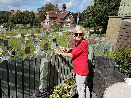 In den verwinkelten Gassen von Brigthon mit den massenhaften Juvelierläden erlag Manfred sogleich dem vielen Glitzer in den Auslagen und kam an einer Uhr für Uschi einfach nicht vorbei. Wenn das keine schöne Entschädigung für das frühe Aufstehen war. Nach dem ersten englischen Frühstück in Brighton ging's weiter nach Arundel in unsere neue Unterkunft. Auch wenn wir bei dem freundlichen Ehepaar und Homer, deren Hund, bereits seit einigen Jahren Gast sein dürfen, überraschte uns deren neues altes Haus mit einem Ausblick der besonderen Art.