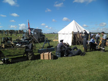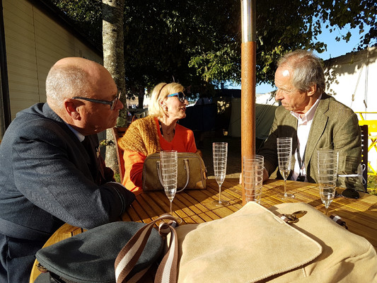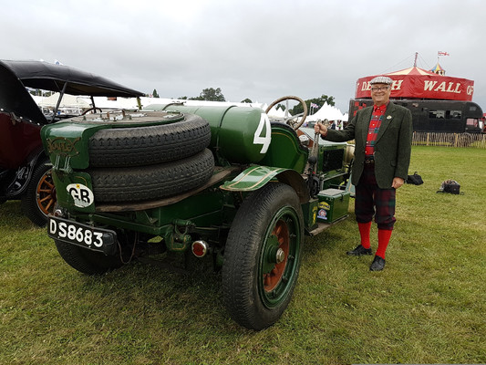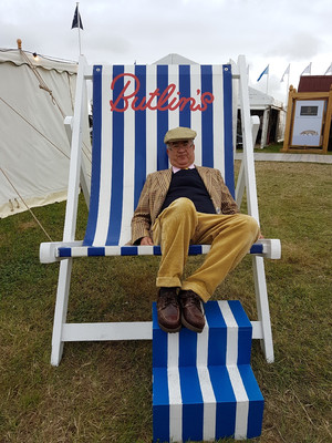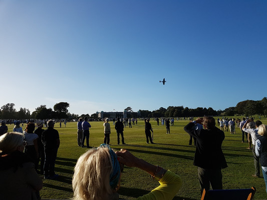 Überraschenderweise 'verpassten' wir jeden der erwarteten Staus bei der Anfahrt zur Veranstaltung, die traditionell bereits am Donnerstag mit einem Cricketspiel auf der großen Wiese vor dem Schloß des Earl of March eingeläutet wird. Schon hierher kommen viele Besucher mit seltenen und schönen Autos, die es sich anzuschauen lohnt. Nach dem Ende des eher langweiligen Spiels - die Regeln sind selbst bei konzentriertem Zuschauen auch nicht andeutungsweise erkennbar - zeigt als Highlight der Pilot einer Spitfire seine Kunstflugfähigkeiten, früher auf Höhe der Baumwipfel und darunter, heute aus Sicherheitsgründen (leider) in größerer Entfernung. Mit einem Gläschen 'PIMM‘S No. 1' (leicht bitterer kräutrig-würziger Likör auf Gin Basis) läßt sich das Warten in den Liegestühlen oder beim Klönen mit alten und neuen Bekannten auf die Flugshow indes recht gut überbrücken.