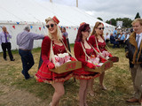 (Alt)-Modisches und optisches Highlight sind natürlich die Damen, die sich im Stile ihrer Urgroßmütter mit Hütchen, Federn, Pelzteilen und sonstigen Accessoires sowie mit kunstvollen Frisuren schmücken. Von den kräftigen Regenschauern - damals wie heute - lassen sich selbst die Damen nicht ernsthaft beeindrucken. Die Pumps werden kurzerhand gegen Gummistiefel getauscht. Ins Paddock dürfen die Herren auch nur mit Overall oder Hemd und Krawatte, und natürlich keine Jeans. Selbstverständlich muß auch das richtige Pappschildchen am Jackett hängen.