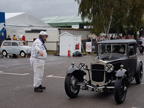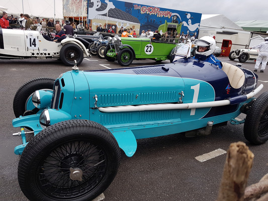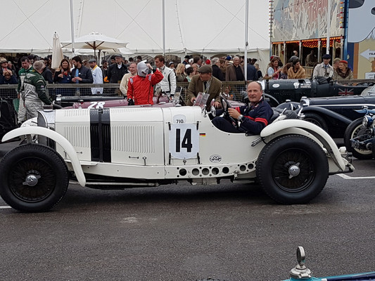Höhepunkt sind immer wieder die Rennen der Boliden AC Cobra, Ford GT 40 und Konsorten der 60iger Jahre, zumal wenn diese von den Heißspornen Frank Stipler, Tom Kristensen und anderen Rennfahrern pilotiert werden. Im Rennen der Vorkriegsboliden der Baujahre 1925-1939 mit SB Kern und SB Dressel in ihren Kompressor Mercedes stiehlt allerdings 'The Owlett' = 'Das Eulenjunge', ein Frazer Nash Saloon von 1928 mit einem 1,5 Liter 4-Zylinder Motor und die spektakuläre Fahrweise seines Fahrers allen die Show. Er ist der absolute Publikumsliebling und läßt die Bentley Blower und Konsorten so langsam aussehen, dass man gar nicht glauben kann, dass an dem 1,5 Liter Motörchen mit Sidepipes wirklich alles original ist. Egal, es brachte wieder total viel Spaß, die urige Karosserie auf den schmalen Reifen um die Schikane (Weather/Track: Cloudy/Dry) driften zu sehen.