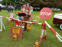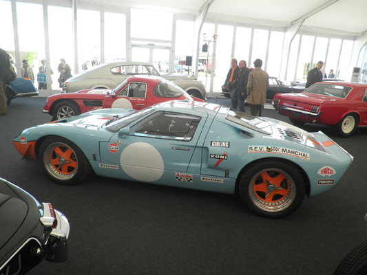 Das Wetter war so scheußlich wie noch nie seit dem von mir erstmals im Jahr 1999 erlebten regnerischen 2. 'Revival International Car Race Meeting'. Damals schrieb ich, 'von den kräftigen Regenschauern ließ sich niemand ernsthaft beeindrucken; allenfalls tauschten die Damen die Pumps mit Gummistiefeln'. Statt Sturzflüge bei den 'air displays' gab es heftigste Sturzregen dieses Jahr. Daher standen viele Füße von Anfang an in Gummistiefeln, weil die Schuhe bereits beim Weg von den Parkflächen auf den durchweichten Wiesen bis zum Eingang ruiniert waren und viele Autos am Ende des Tages mit einem Traktor aus dem Schlamm der Parkflächen gezogen werden mussten.