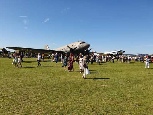Am Freitag ging´s dann wieder richtig los. Und wer glaubt, das Goodwood Revival würde irgendwann langweilig werden, der irrt gewaltig, auch wenn die früher super spektakulären Air Displays zwischen den Rennen nicht mehr stattfinden. Die Fans historischer Flieger kommen aber am Boden auf ihre Kosten, denn so hautnah darf man sicher nirgendwo Flieger von 1914 bis hin zu zwei großen DC 3 betrachten. Das Goodwood Revival erfindet sich von Jahr zu Jahr neu und ist drei Tage lang nicht eine Sekunde langweilig. Vielleicht für einen Fahrer, der nur an einem der insgesamt 15 Rennen mit den vorgeschalteten Trainingsläufen um die Pool Position teilnimmt, mag das anders sein.