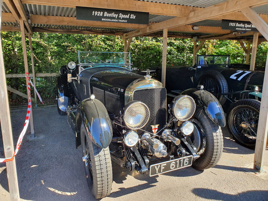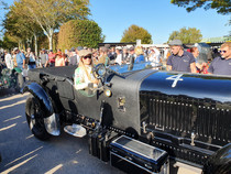 Anläßlich 100 Jahre Bentley lieferten sich 29 Bentley der Baujahre 1922 bis 1930 ein packendes noch nie dagewesenes Rennen um die Brooklands Trophy. Die schweren Boliden mußten mit geschlossenem Verdeck starten und in einer jedem vorgegebenen Runde an der Box das Verdeck öffnen. Kurios und erheiternd war, dass es auch Fahrzeuge ohne Verdeck gab; die mußten an der Box 6 Mal um ihr Auto herumlaufen. Mancher Driver trieb den Motor bis an den Siedepunkt und kam mit kochendem Kühler an die Box. Und raten Sie mal, wer wohl die einzige Frau hinter dem Volant des einzigen Bentley Six Speed von 1928 mit 6597 ccm Hubraum war. Unsere SD Katarina Kyvalova holte zwar nicht die Pool Position, hielt aber super mit und landete vermutlich mit dem schwersten Auto auf Platz 24. Damit ihr nicht etwa langweilig würde, startete sie mit einem Cooper-Jaguar T33 von 1954 zudem auch im guten Mittelfeld beim Rennen um die Freddie March Memorial Trophy. Übrigens: Neben unserer Racing Queen haben wir noch viele andere großartige Frauen in der Hammonia, worauf der ASC stolz sein kann.