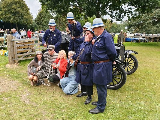 Das Goodwood Revival beschränkt sich natürlich nicht nur auf die Rennaktivitäten. 150000 Besucher amüsieren sich an jeder Ecke prächtig bei toller Live Musik mit Tanz, beim Shoppen bei an die 500 Anbietern jeden Genres, beim Verfolgen (mit Bieten) der Versteigerung, beim Autokino und schauen, schauen, schauen, z.B vor der Porsche Werkstatt, in der geschraubt und alle Stunde ein 356-Motor angelassen wurde. Auch die Paraden z.B. der anläßlich 60 Jahre Mini. 150 Mini der Baujahre 1959 bis 1968 in allen Versionen erzeugen nur Fröhlichkeit und so mache Erinnerung. Nur das Ablaufen des Parkplatzes der Besucher mit einem Fahrzeug bis Baujahr 1965 bringt nicht nur runde Füße, sondern auch mal ein Pläuschchen mit Picknickern auf der Decke oder Klappstühlen vor dem offenen Kofferraum ihrer Autos.