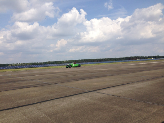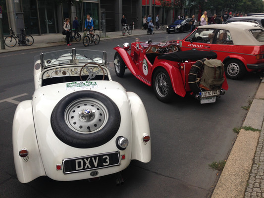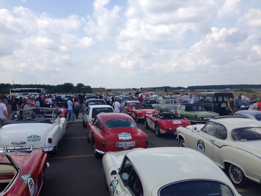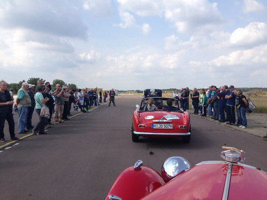 Zwischenziel war der Flugplatz Neuhardenberg. Nach einer Stärkung fand gleich eine tolle Wertungsprüfung auf der Startbahn der Flugplatzes statt. Von Neuhardenberg aus wurde die letzte Etappe der Rallye angetreten. Die ersten Teilnehmer trafen am frühen Nachmittag beim Axel-Springer-Haus in Berlin ein.