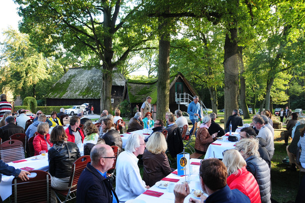 Vom Start aus machte man sich auf entlang der Harburger Berge in die Heide. Jesteburg, Maschen, Garlstorf und Egestorf lagen auf unserem Weg. Im Landgasthof 'Zur Eiche' in Ollsen wurde die Mittagsrast eingelegt. Es gab ein zünftiges 'Heidjer-Buffet', darauf Leckerein aus der Lüneburger Heide und als kleine Sensation unterhielt die engagierte Kapelle die Teilnehmer mit Live Musik.