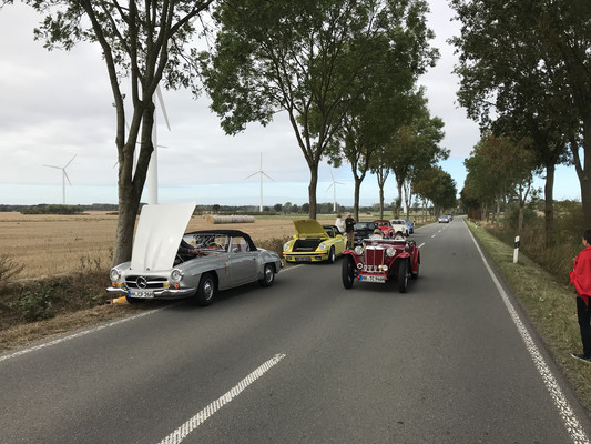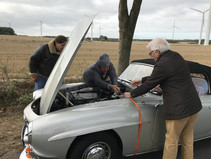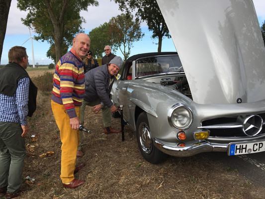 Zurück ging es immer geradeaus mit 14 mal Abbiegen (auf 79km) direkt zum Forsthaus Friedrichsruh in Aumühle. Leider gab es während der Rallye eine abgerissene Auspuffanlage zu beklagen, die aber dafür sorgte, dass ein 190 SL endlich einmal wie ein Sportwagen klang.
