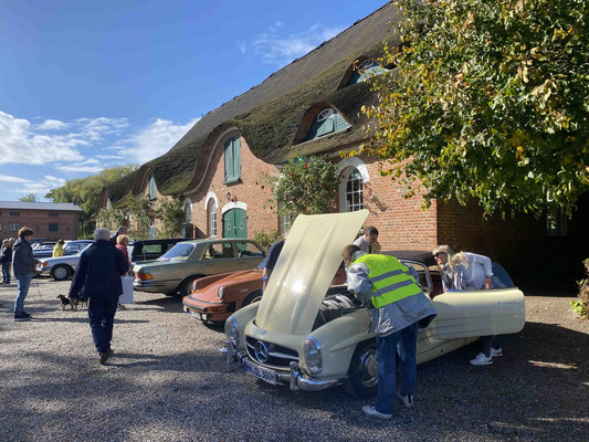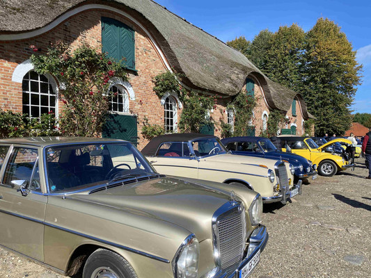 Nach einem gemeinsamen Frühstück im Gasthaus Alster Au in Duvenstedt im Nordosten von Hamburg ging es gegen 9:30 Uhr los. Die Strecke führte die gut 30 Fahrzeuge ins landschaftlich schöne Ostholstein. Gegen Mittag wurden wir auf dem Gestüt Gut Schönweide nördlich von Plön empfangen, das als eines der schönsten Gestüte in ganz Deutschland gilt.
