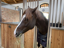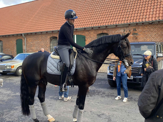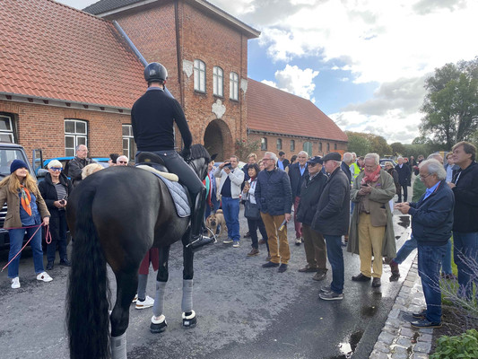 Nach einem Empfangsdrink in der Bar der Reithalle erhielten wir eine exklusive Dressur-Vorführung von 'Follow Him's, einem Prämienhengst der Oldenburger Körung 2017. Im Anschluss an die beeindruckende Dressur durften wir die Stallungen und die Zuchtstation besichtigen, wobei die Einrichtung der Zuchtstation sehr nüchtern war. Auf das Ambiente legen Hengste offenkundig keinen Wert.