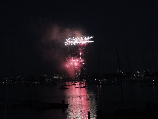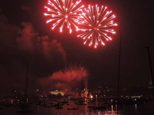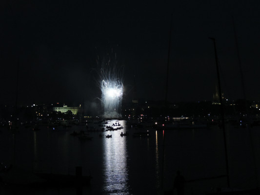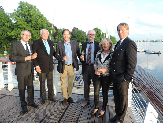 Ein köstliches 3 Gänge Menü und anregende Gespräche ließen die Zeit bis zum Feuerwerk im Nu vergehen. Pünktlich um 22.30 Uhr (die Japaner haben sich schon einiges von den Deutschen abgeschaut) startete das halbstündige Feuerwerk. Imposante Glitterregen, wunderschöne Chrysanthemen und rote Herzen wurden in den Himmel gezaubert. Die Außenalster war voller Boote und auch auf den Wanderwegen rund um die Alster standen die staunenden Zuschauer. Ein wirklich schönes Geschenk der Japaner an unsere Hansestadt.