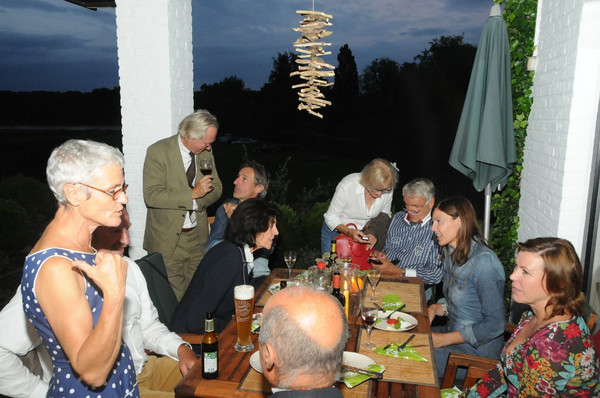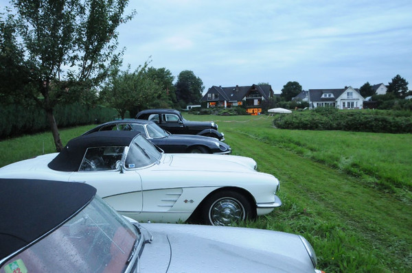 Die Oldtimer durften wieder auf der großen Wiese parken und der Blick aus dem Haus, über die Oldtimer auf den See war wunderschön. Der Matjes mit neuen Kartoffeln war köstlich und der exzellente Wein wurde ausgiebig genossen. Es war ein sehr schöner Abend mit anregenden Gesprächen und wir bedanken uns recht herzlich bei den Gastgebern.