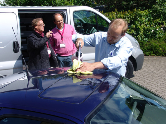 An einem Porsche 928 GTS wurden sämtliche Schritte von der richtigen Reinigung, über Anschleifen des Lacks, das Einwachsen bis zur Politur gezeigt. Nachdem der Wagen fertig war, sagte der Besitzer, dass er diesen jetzt nicht mehr fahren werde.